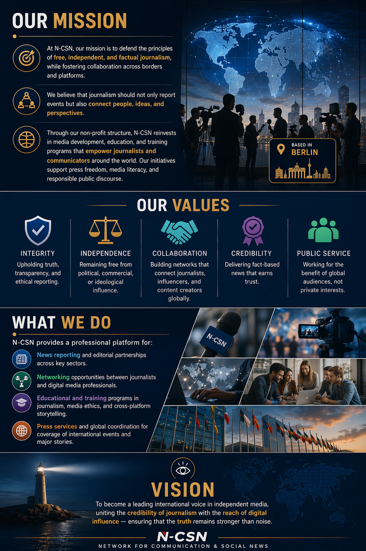 Based in Berlin, N-CSN serves as a global hub connecting journalists, media organizations, and digital communicators who share a commitment to transparency, integrity, and public